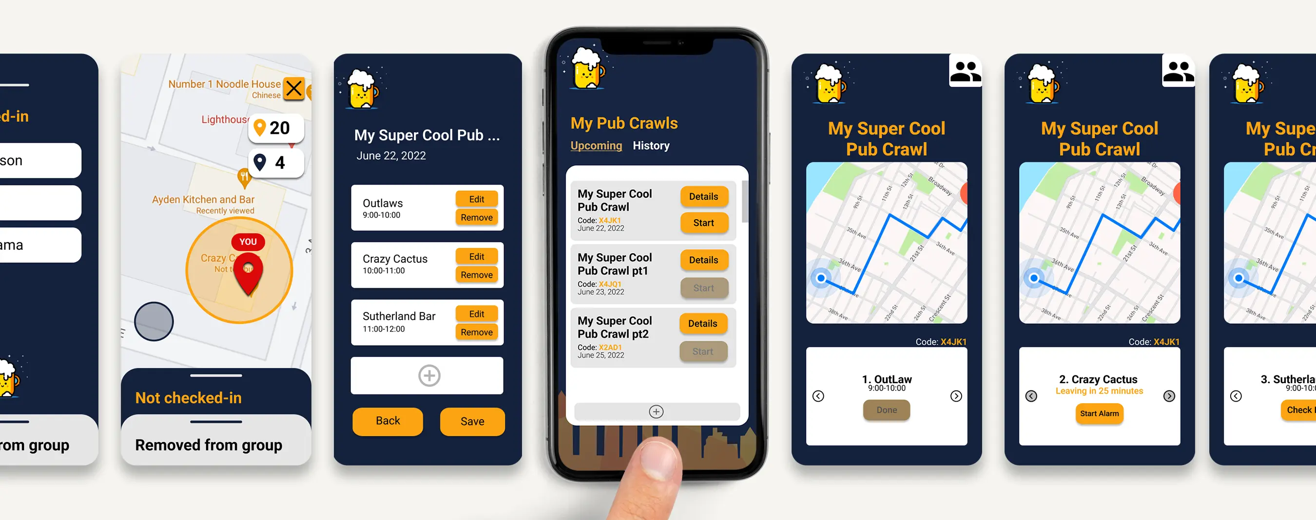 A UX class project focused on solving the challenge of keeping pub crawl groups connected and coordinated.